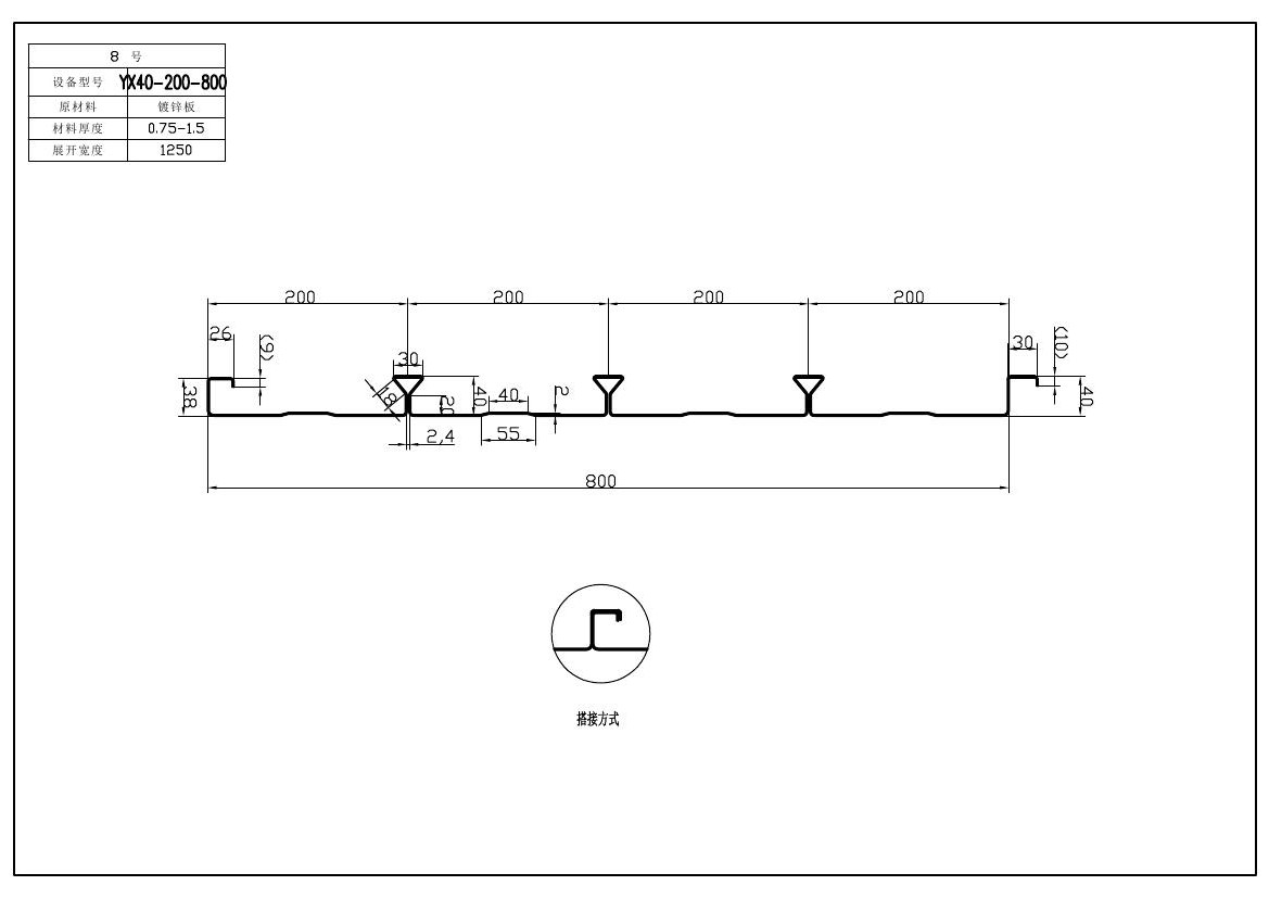 YX40-200-800閉口樓承板,也叫壓型鋼板、鋼承板、鋼樓承板,是采用鍍鋅鋼板經輥壓冷彎成型,其截面成V型、U型、梯形或類似這幾種形狀的波形,主要用作性模板,也可被選為其他用途。